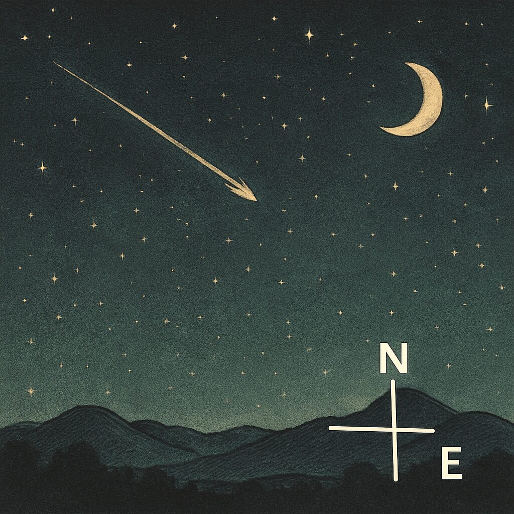 2025年の極大日(8月13日)は月が下弦に近い状態で、深夜には月が沈んで空が暗くなるため、流星がより鮮明に見えやすくなります。